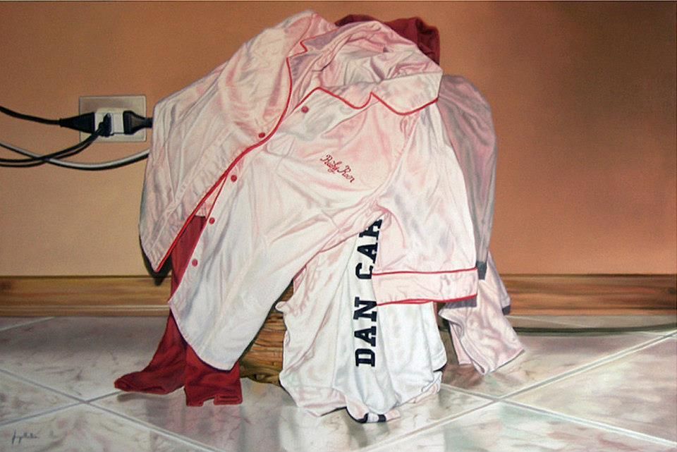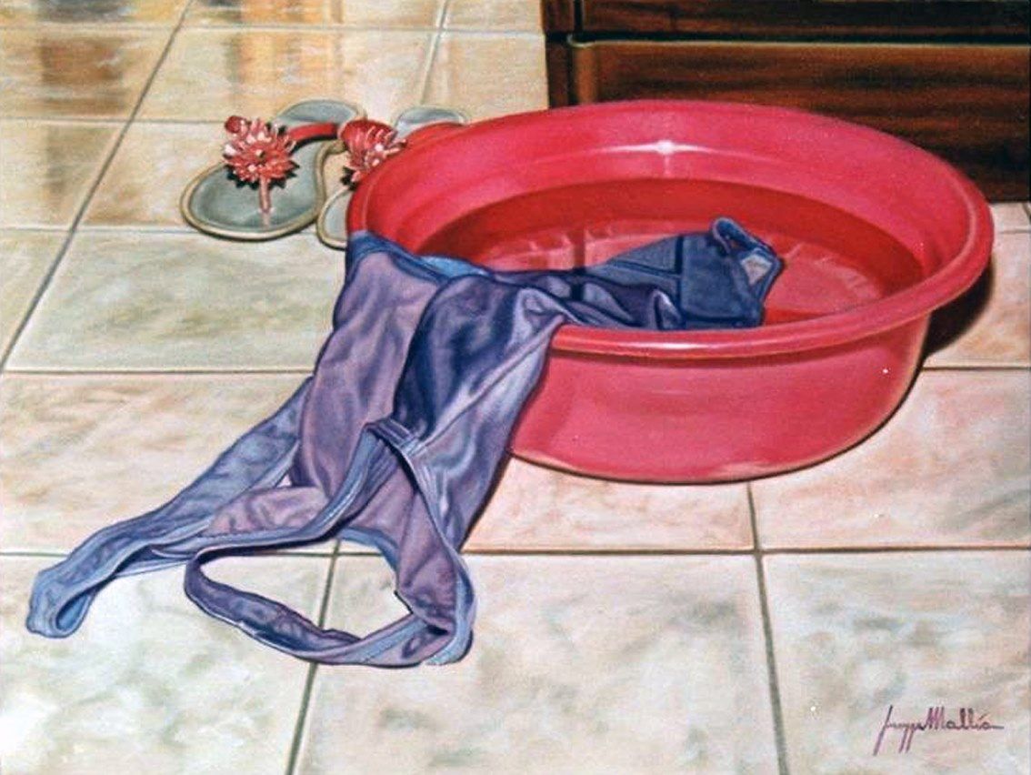 Quotidianità è la familiarità, la luce di casa,una fotografia della vita di tutti i giorni con la sua carica di contenuti affettivi e di tranquillizzanti immagini abituali. Ma "quotidianità può essere anche l'energia vitale che ci portiamo dentro (se la sentiamo) per tutta l'esistenza. Può essere il realismo della luce che disegna oggetti comuni e li indaga da vicino,lasciando il ruolo di protagonista a ceste di biancheria, borse appese ad un attaccapanni e magliette stampate con le faccine dei cartoni animati giapponesi. Mallìa rende infatti, padroneggiando lo studio della luce e dei colori velatura su velatura, forme nette, lucide, in un "fotorealismo" che si ricollega all'iperrealismo americano ( consapevolmente liberato dalla pastosità del tratto per dar spazio ad una pittura liscia e pulita, di matrice più “italiana") e assorbe molto dalla tradizione classica ottonovecentesca, individuando tra i suoi modelli il preraffaellita inglese Holman Hunt...
